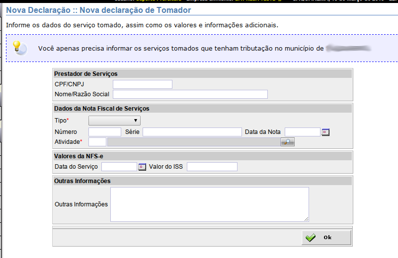 3) Preencha o formulário com os dados da nota e serviços prestados ou recebidos. Confirme a declaração.